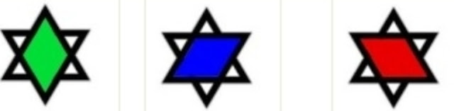 Primeiro: A estrela de Davi nada mais é do que um quadrado em movimento, em três posições diferentes.